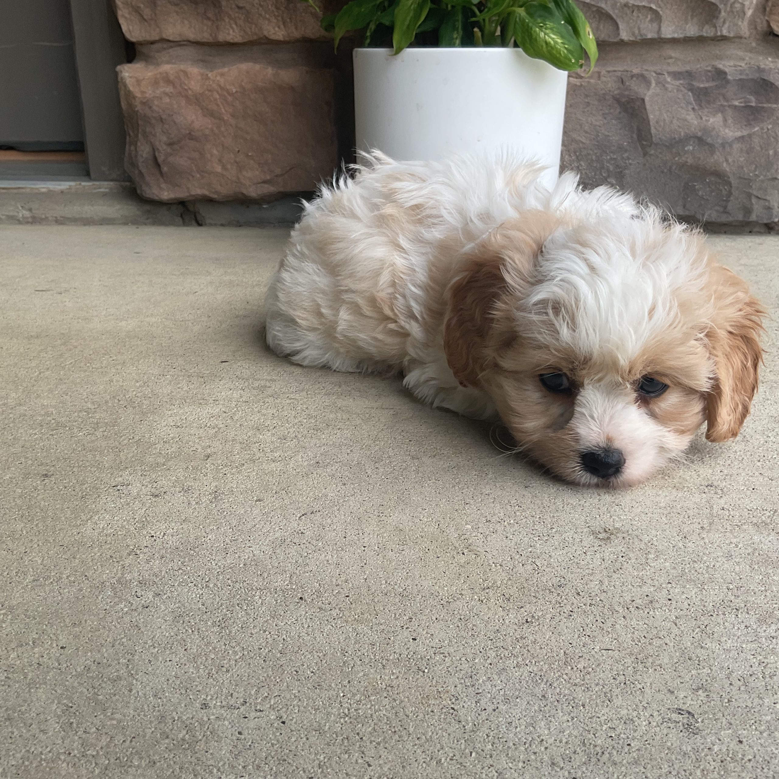 I’m so excited to be able to introduce such a cute little puppy by the name of Lucky. he’s everything I like about a Cavachon. he has a playful, laid-back, loving personality. lucky is currently up-to-date with all his vaccinations in deworming he will probably be around 14 to 16 pounds and he’s an adult size